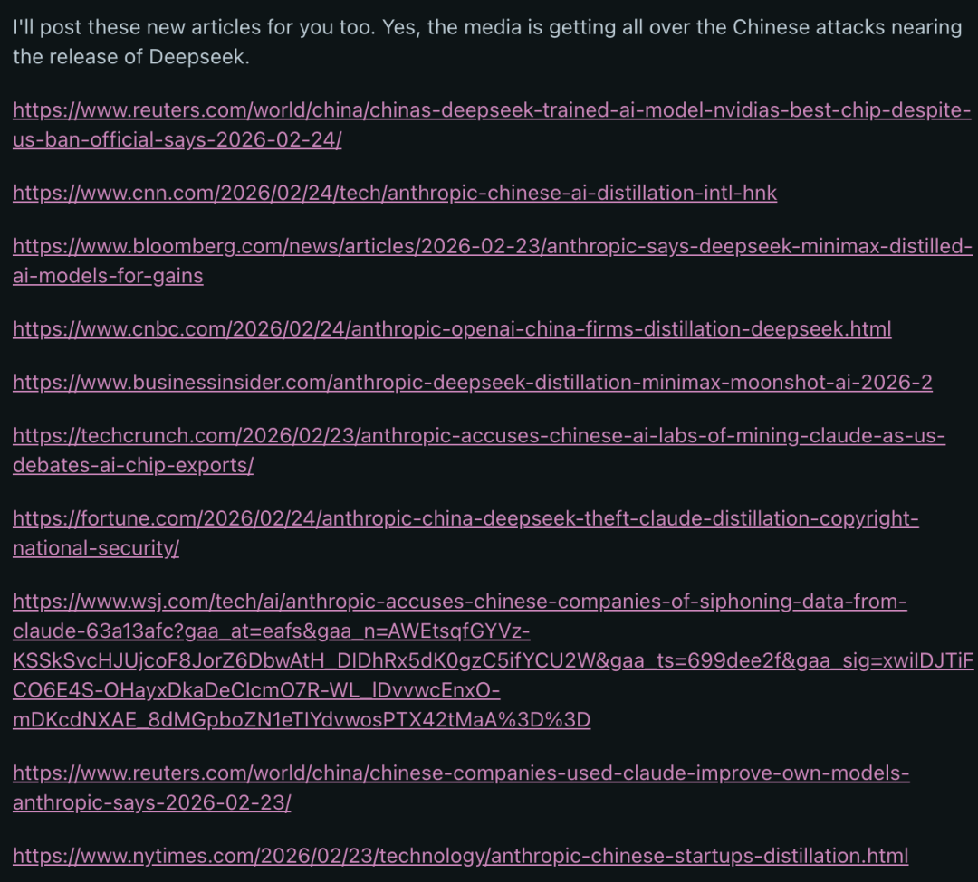 抢占叙事:在DeepSeek V4发布前,预先埋下「他们只会作弊/抄袭」的叙事框架。这样,无论V4多成功,公众的第一反应都会被引导至负面解读。