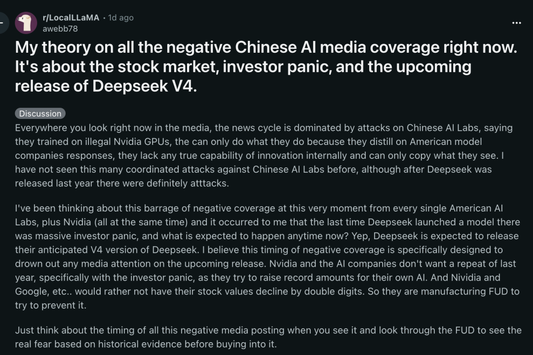 将其与即将发生的重大事件(如DeepSeek V4发布)联系起来,思考谁最有可能从这种舆论中受益,以及他们真正在恐惧什么。