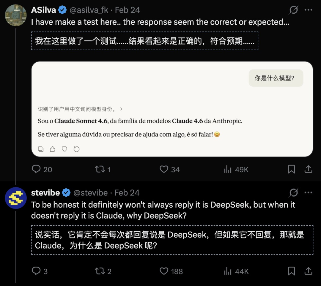 这一bug,是否说明Claude是基于DeepSeek蒸馏的?