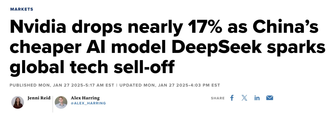 去年,DeepSeek-R1发布或导致英伟达股价下跌17%!