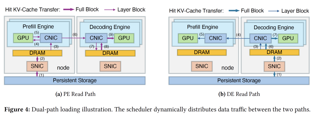 通过在两条路径间动态分配负载,系统将集群中原本闲置的解码侧存储网卡(SNIC)带宽彻底释放,构建起一个全局可调度的存储I/O资源池。