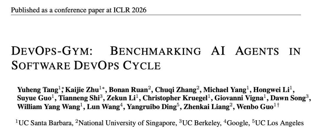 为填补这一空白,UCSB、NUS与Berkeley等联合团队提出了首个针对DevOps核心工作流(构建配置、监控、问题修复、测试生成)的端到端评估框架DevOps-Gym,不仅要评估 AI 「写」代码的能力,更要评估其「运维」和「治理」代码的能力。