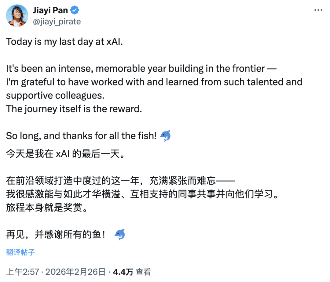 两人都是grok团队的重要贡献者,却在48小时内相继离开,这让外界对xAI内部状况产生了更多猜测。