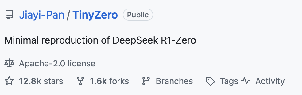 2025年,Jiayi Pan在X上宣布开源TinyZero。