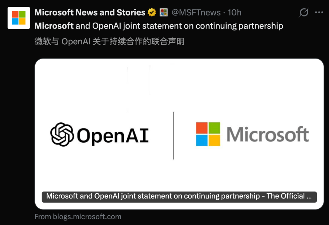 双方发布联合声明称合作伙伴关系依然「稳固且核心」,且微软仍保留了参与本轮融资的期权。