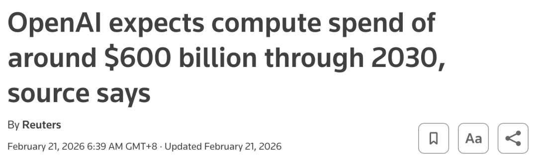预计到2028年,OpenAI烧钱「规模」将达到1570亿美元,融资的1100亿再加上手头的400亿美金现金,刚好覆盖这一预期的缺口。