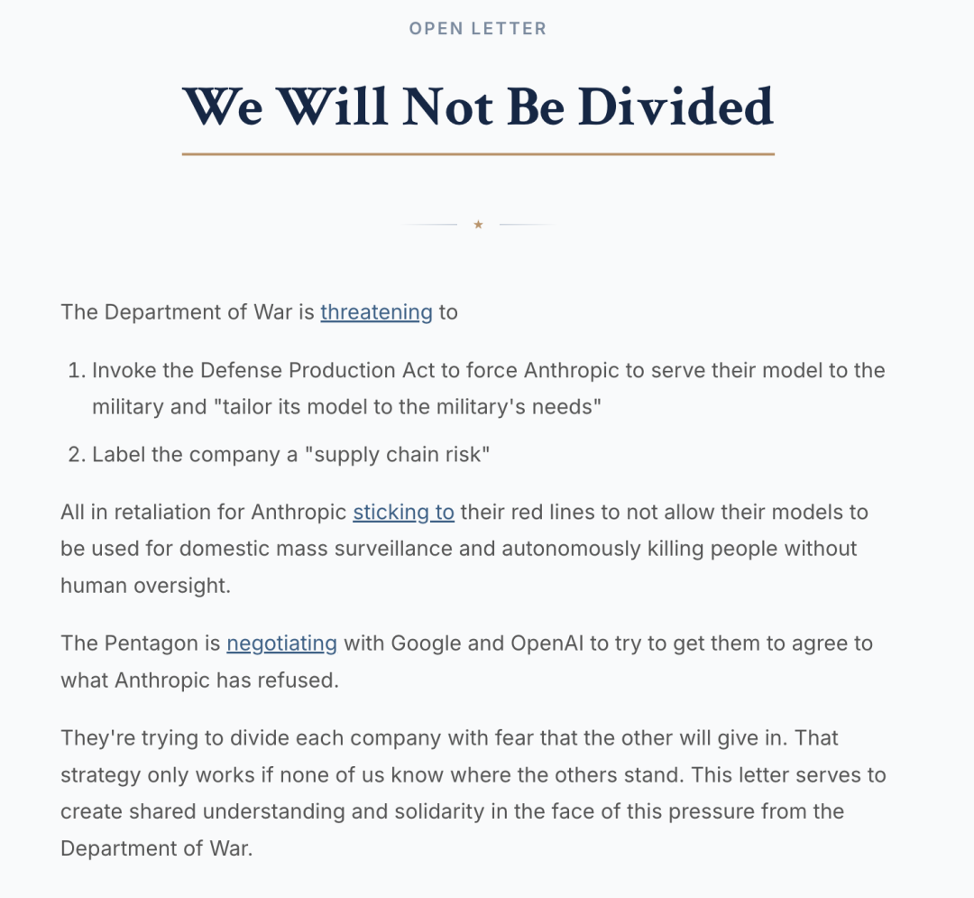 有史以来第一次,谷歌、OpenAI等巨头出人意料地统一战线,坚定地站在Anthropic这一边。