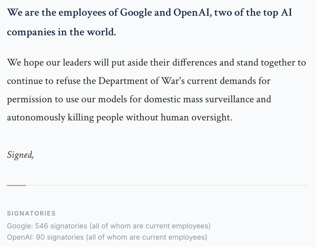 在一封联名信下面,已有636名OpenAI和谷歌员工,署上了自己的名字。
