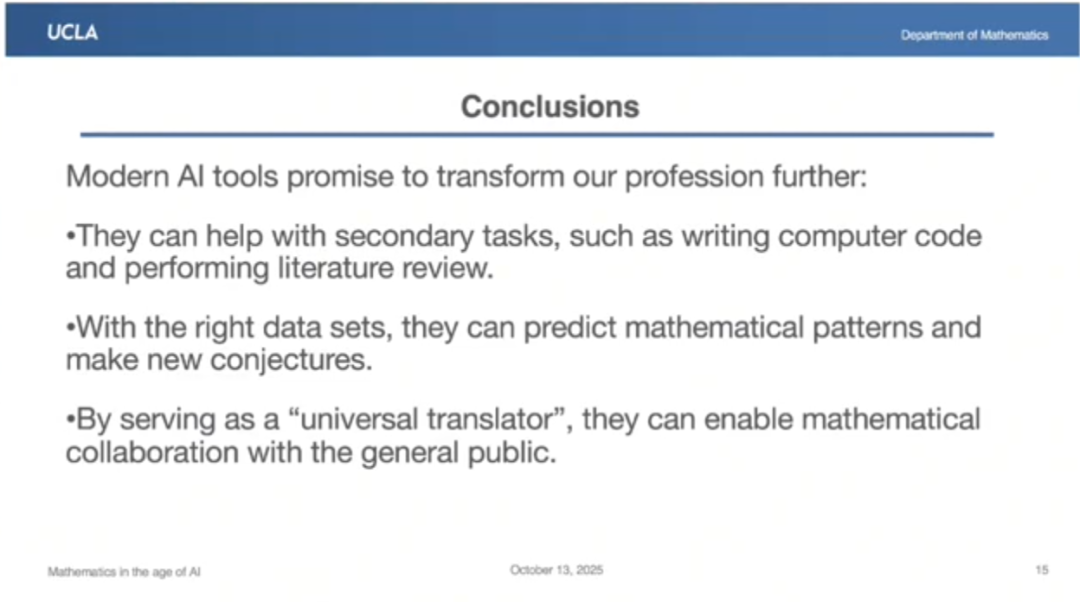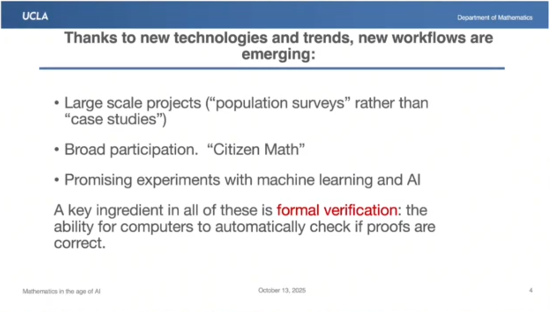 我将谈谈我所在的数学领域在 AI 时代是如何发生变革,以及这种变革可能对其他学科产生的影响。但当前我们身处一个充满变革和不确定性的时代,这是我们不太习惯的。就数学领域而言,我们或许是所有学科中最保守的,因为几个世纪以来,我们的研究方法几乎未曾改变。
