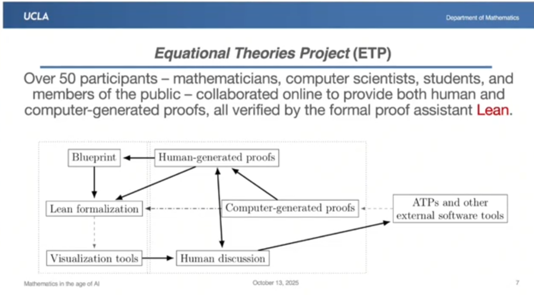 第一个案例是去年我在加州大学洛杉矶分校启动的“方程理论项目”,这个项目是我与 50 位合作者共同完成的。其中大部分伙伴都是通过这个项目结识的,之前我都没见过面。而且他们中的大多数并不是专业数学家。很多计算机科学家、学生、研究生、本科生,甚至一些高中生都参与了这个开放的协作项目。