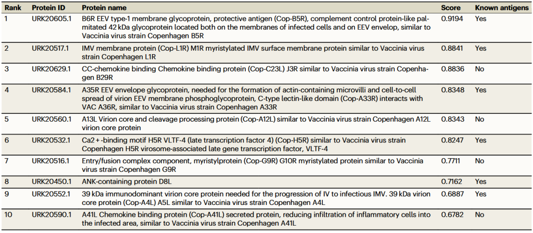 表3 PLGDL模型输出的Mpox前10个候选抗原