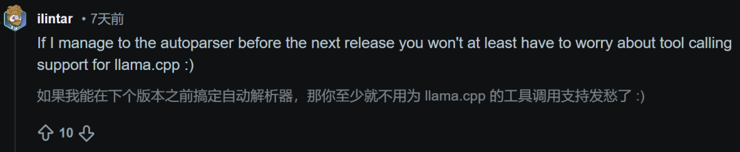 有用户甚至主动提出:「如果我能在下个版本前搞定自动解析器,你们至少不用担心llama.cpp的工具调用支持了」。