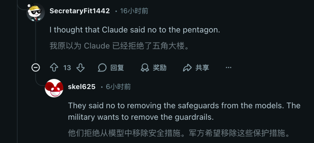 当然,也有Reddit网友持不同看法,认为军方可能只是针对特定用例做了微调。