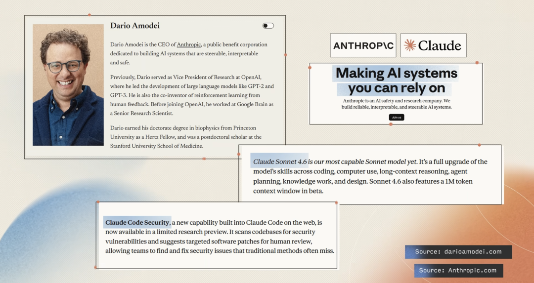2021年,Dario Amodei带着妹妹和十几位核心研究员离开OpenAI,创立Anthropic。