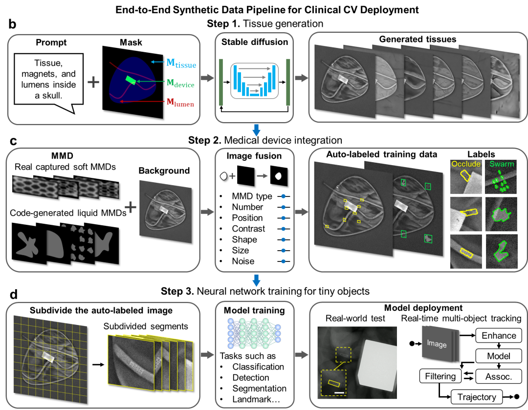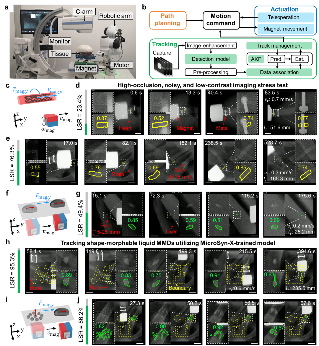 合成数据驱动的视觉模型与磁驱和x光影像系统的软硬件结合,实现复杂环境下微型医疗器械的鲁棒追踪与控制