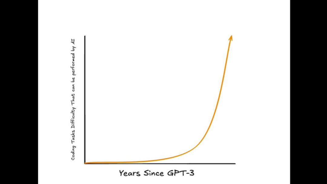 想想6个月前、1年前AI编程智能体的质量,再看看它们现在的水平,画出一条最佳拟合曲线,就能预见6个月后随着更多AI编程智能体问世,它们将达到怎样的高度。
