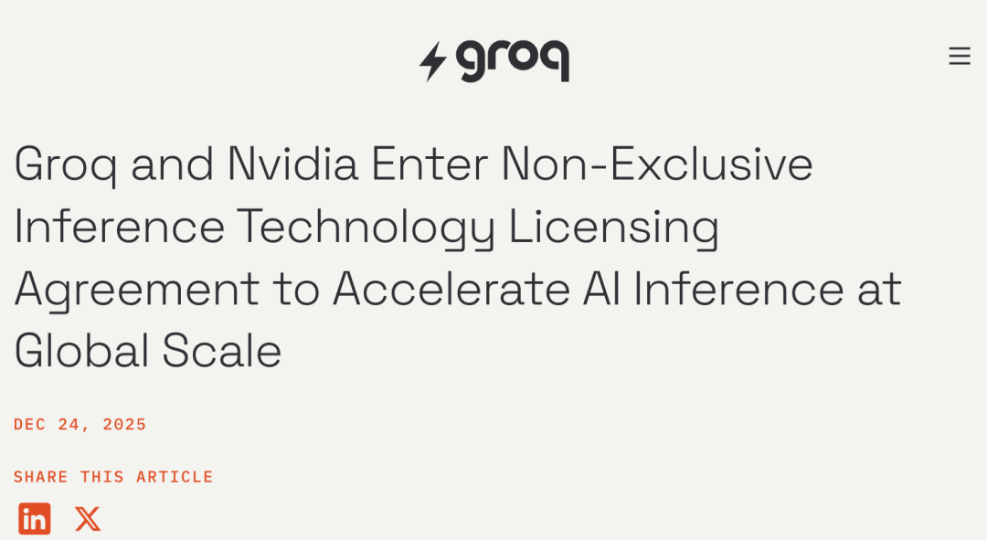 英伟达斥资约200亿美元,完成对Groq核心技术与团队的“acqui-hire”(收购式招聘)。
