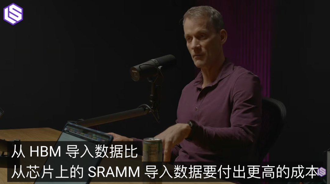 GPU通常将大量模型参数存放在外部HBM(高带宽内存)中,计算核心与内存之间需要频繁数据搬运。在训练阶段,通过大规模并行可以摊薄搬运成本。