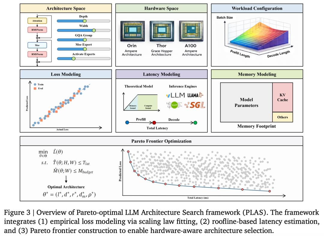 团队开发了PLAS框架(Pareto-optimal LLM Architecture Search):