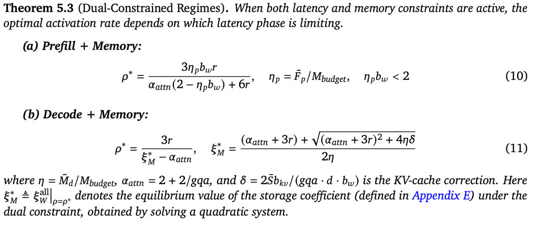 延迟和内存同时紧张(实际部署最常见的情况)的场景下,论文给出了预填充和解码两种阶段各自的精确闭合解。