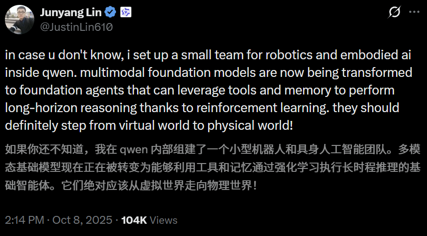 如今,林俊旸选择在这个节点交出千问的接力棒。