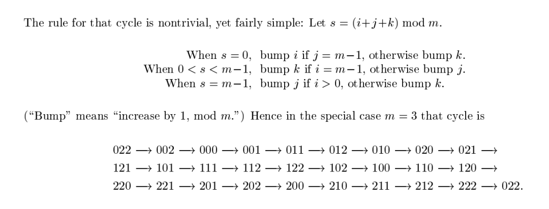 随后,高德纳证明,这条路径确实访问了所有m²个具有相同i值的顶点,然后依次覆盖所有i,最终形成长度为m³的完整环。
