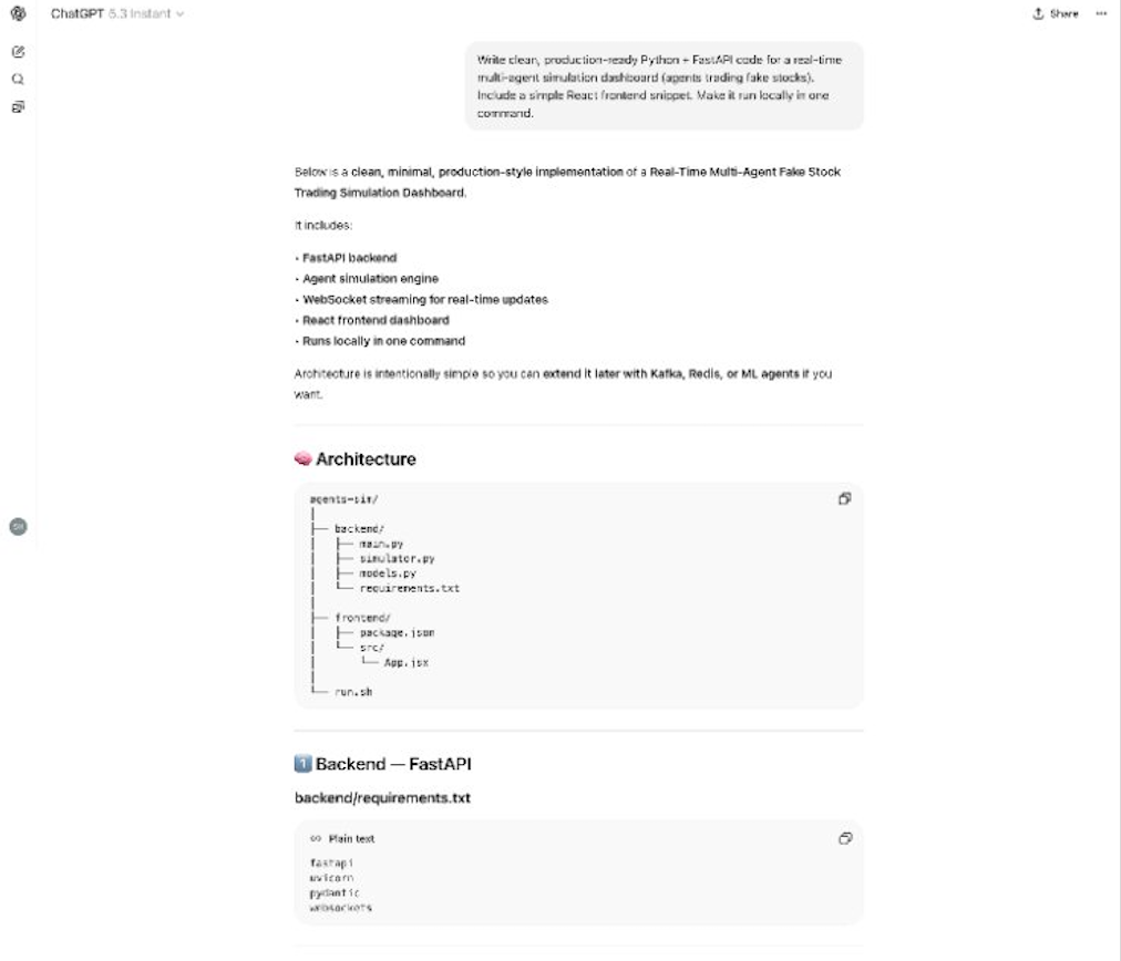 而GPT-5.3 Instant给出的代码方案更完整和工程化,更接近真实上线情况,仪表盘数据也会实时自动刷新,而非静态页面。