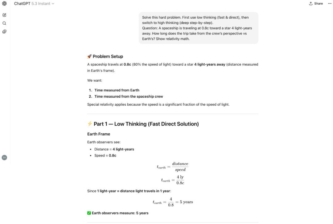 GPT-5.3 Instant也成功完成了思考,并额外做了表格和通俗解释,让结果更易懂更完整。