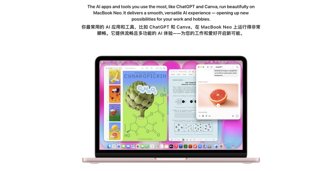 在配置上,这台MacBook Neo直接用上了此前Apple A18 Pro,也就是iPhone 16 Pro的那颗芯片。