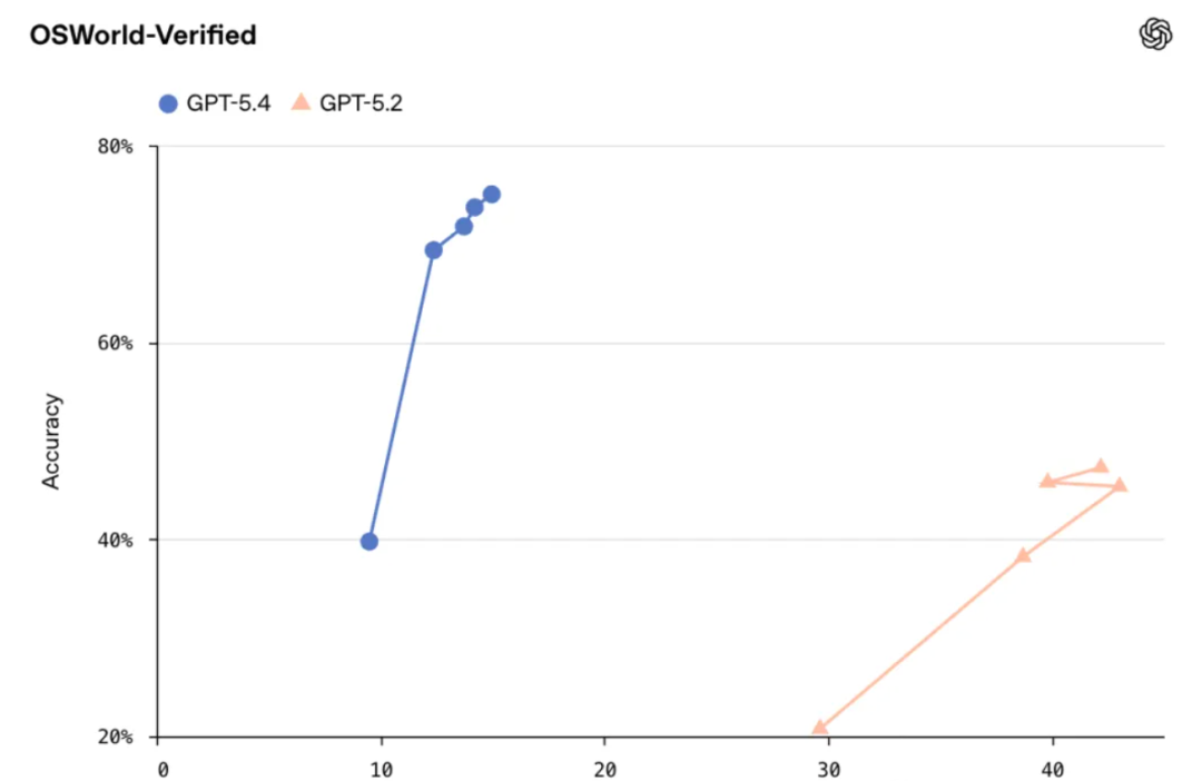 GPT-5.4是OpenAI发布的第一个具备「原生电脑使用能力」的通用模型。