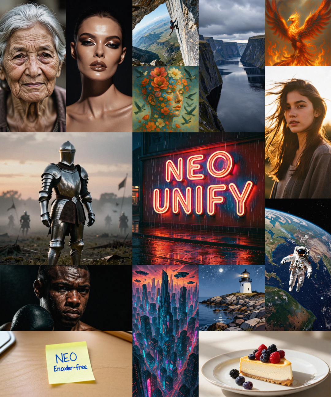 最关键的是:不需要VE,也不需要VAE,NEO-unify实现了多模态处理的真正归一。