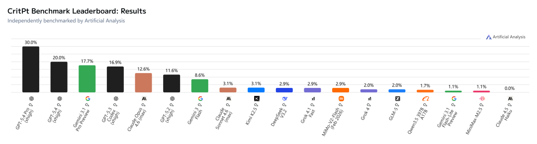 CritPt,一个让所有大模型现原形的「地狱级」物理基准,最近放出了最新排名。