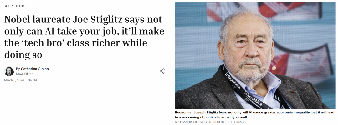 如果你觉得这只是科技行业的「内部调整」,和普通白领没什么关系,那请听听约瑟夫·斯蒂格利茨(Joseph Stiglitz)怎么说。