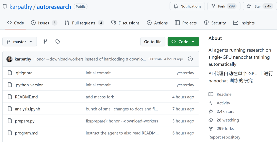 项目地址:https://github.com/karpathy/autoresearch