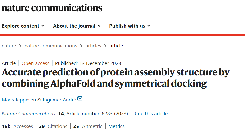 这类大型组装体通常呈现立方对称性(如四面体、八面体、二十面体),其亚基排列紧密,界面相互作用复杂。传统实验方法(如冷冻电镜)耗时耗力,而现有计算工具因计算资源限制和采样效率低下,难以处理如此庞大的系统。针对这个情况,瑞典隆德大学的Ingemar André团队在Nature Communications发表研究,提出了一种结合AlphaFold预测与对称性引导的分子对接的新方法EvoDock,成功实现了立方对称蛋白质组装体的高精度结构预测。该方法不仅填补了AlphaFold的空白,更为研究病毒、分子机器等复杂系统提供了全新工具。