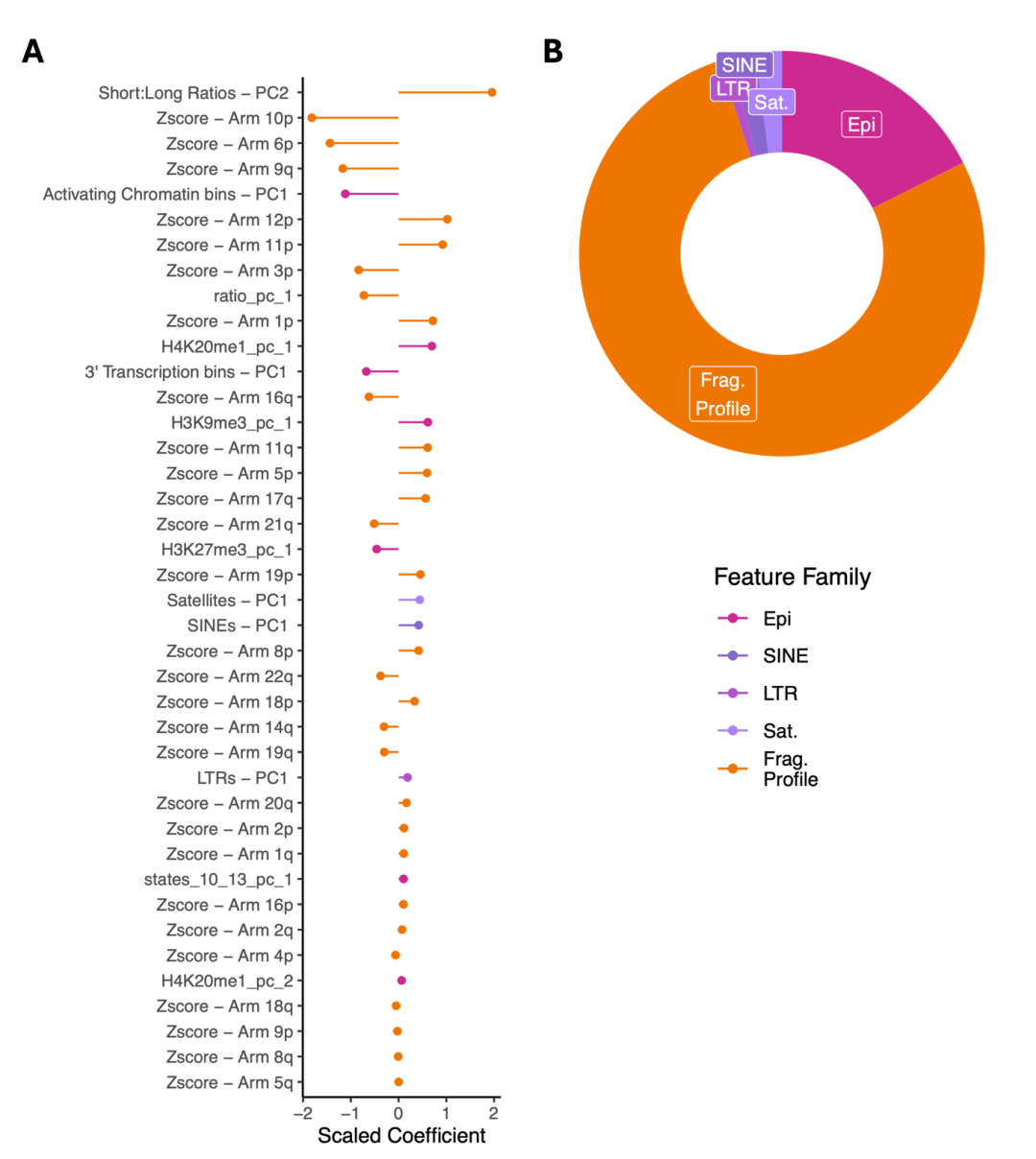 图1.机器学习分类器中用于肝纤维化和肝硬化的cfDNA片段组特征。