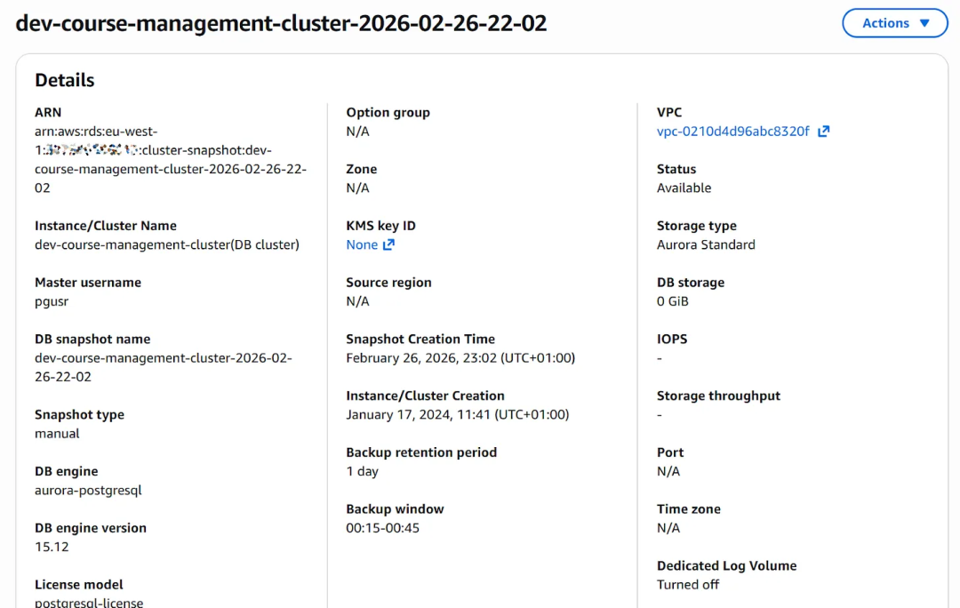 星期四的 RDS 事件。备份在 00:24 创建,并且在 AWS 控制台的事件部分中可见,但备份文件本身却不见了