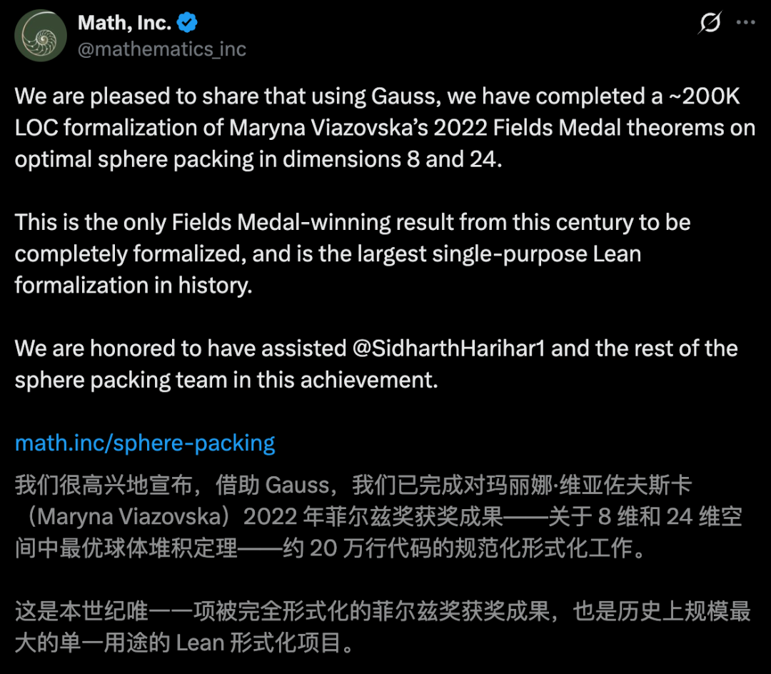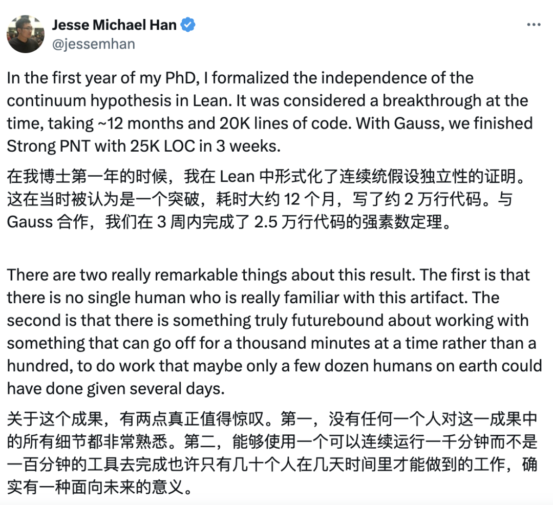 在此之前,人类数学家始终作为逻辑的主理人,AI仅负责执行;而现在,Gauss展现出了比人类更敏锐的纠错直觉。