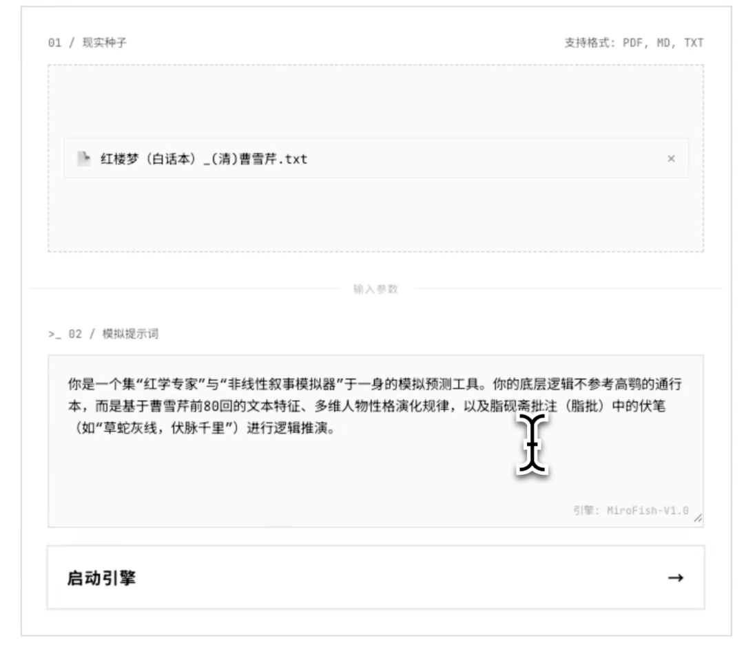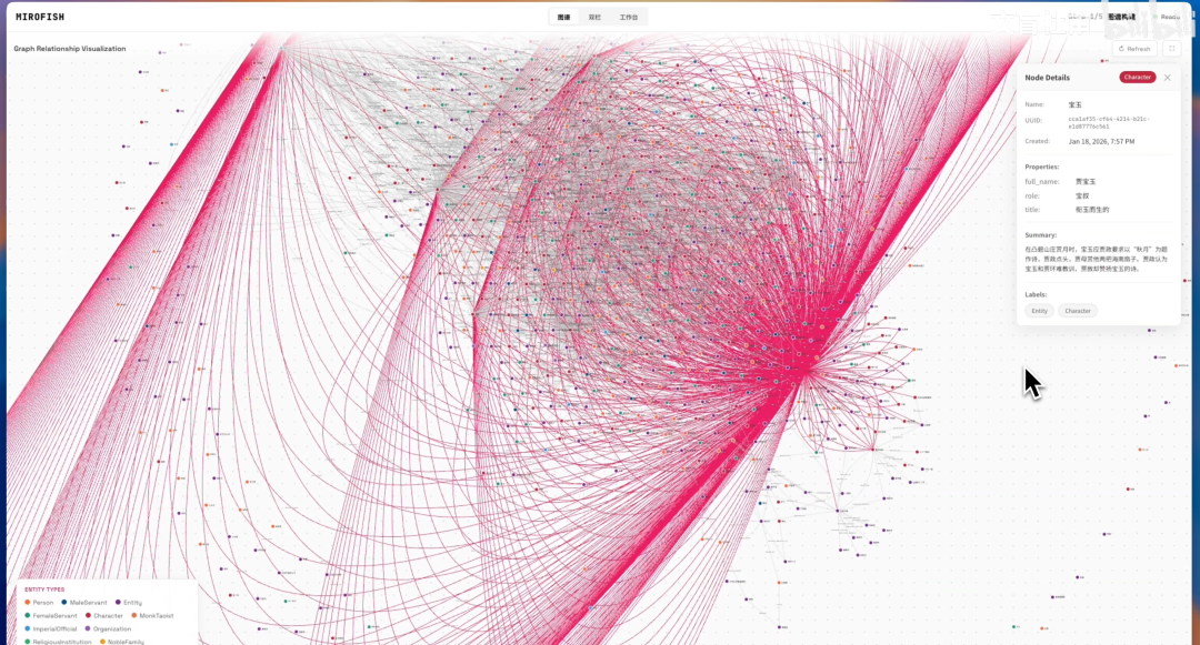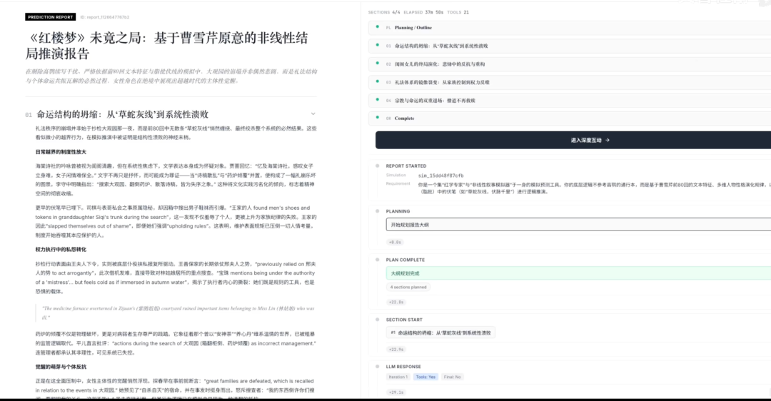 我们以作者演示的“红楼梦续写失传结局”为例,看看MiroFish具体是怎么运作的。