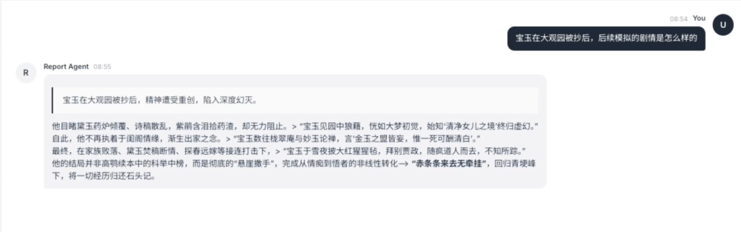 另外,还可以与模型进行互动,比如直接问它“在大观园被抄后,宝玉后续剧情是怎样的”。