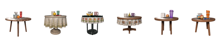 例如下图,只需要一张真实桌子的照片和几个提示词,就可以泛化出近乎无限的桌子。