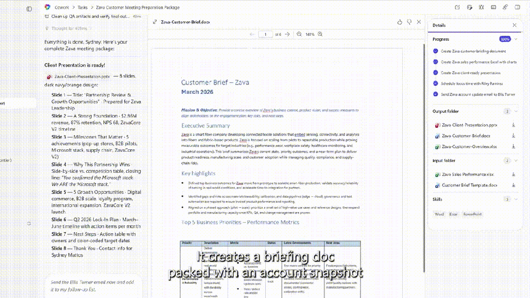 这种「从计划到行动」的闭环,让Copilot Cowork在实际办公中展现出惊人的生产力。