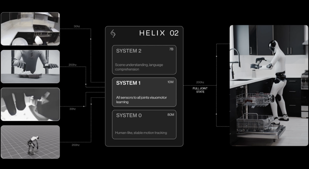 Helix 02中,System 1接入了全部传感器,并直接控制整台机器人: