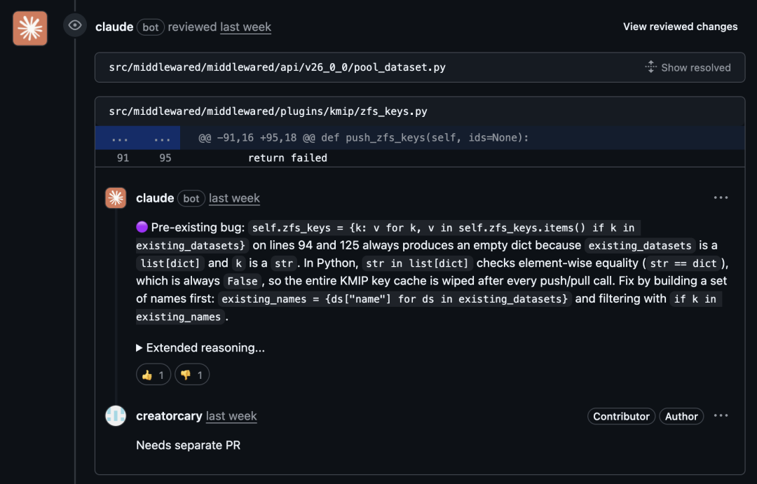 iXsystems,一家做TrueNAS的公司,在用Code Review评审了一个ZFS加密相关的代码重构。