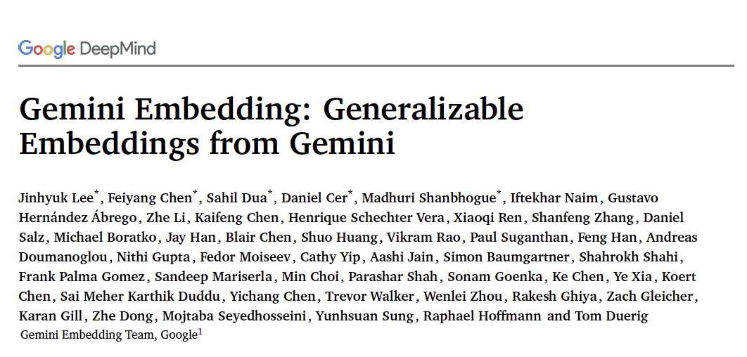 例如,在谷歌此前的论文《Gemini Embedding: Generalizable Embeddings from Gemini》中——