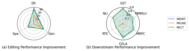 目前主流的「先定位后编辑(Locate-then-edit)」范式(比如大名鼎鼎的ROME和MEMIT)在单次知识更新上极其精准。为了让它们适应连续编辑,近期的研究(如RECT、AlphaEdit)尝试在参数搜索时加入正则化或零空间投影等启发式约束 。