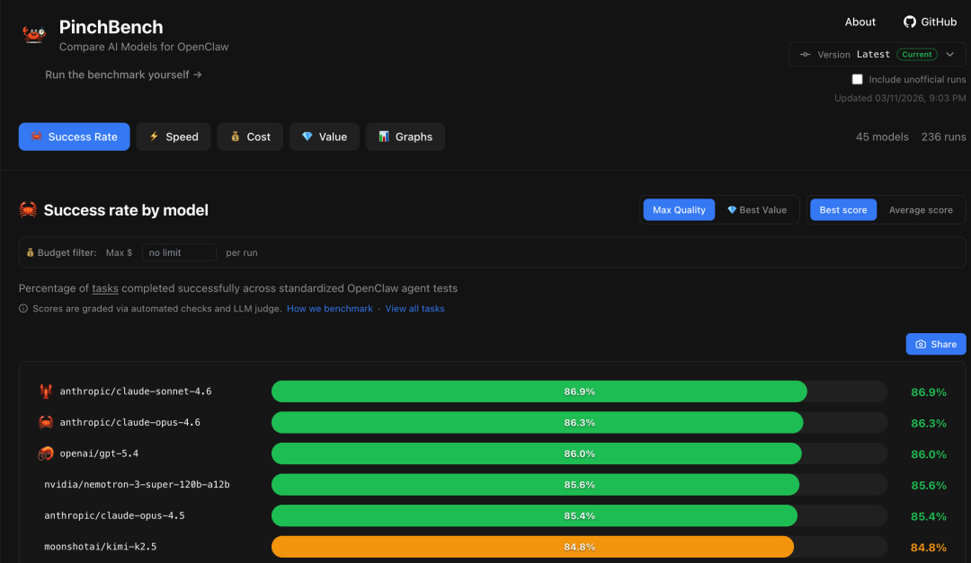 在评估OpenClaw智能体控制能力的PinchBench测试中,这个模型一举拿下85.6%的高分,强势空降同类开源模型榜首。