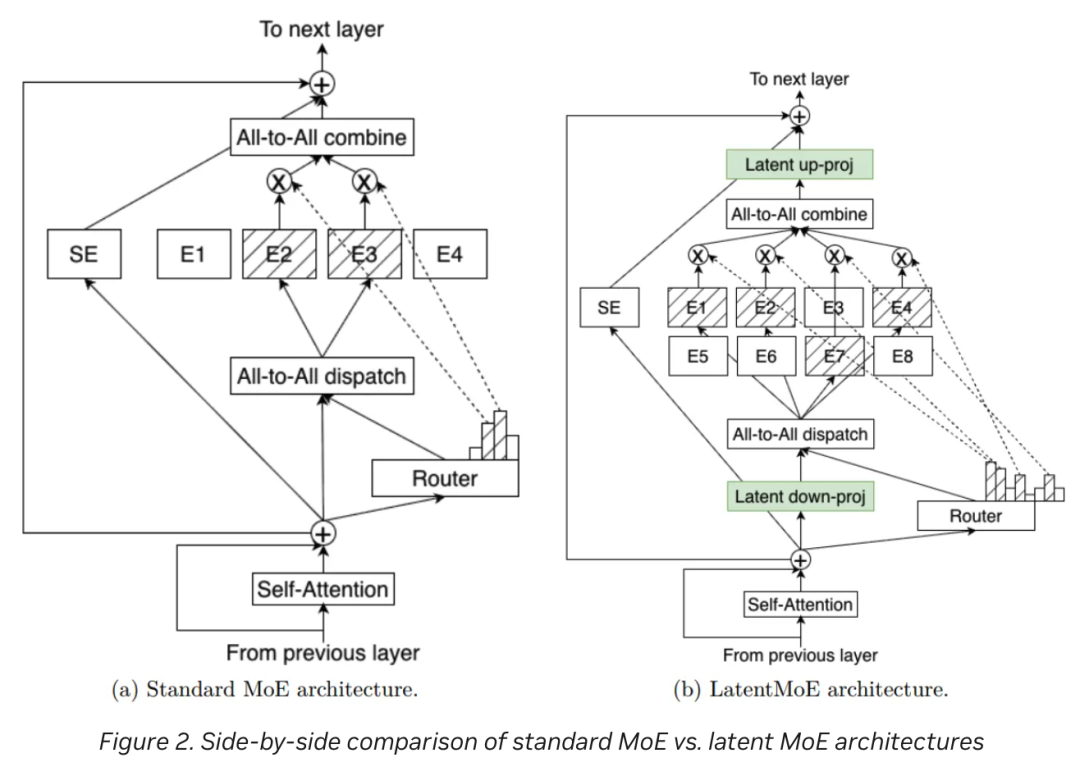 在模型规模的扩展上,为了解决传统混合专家架构在通信和计算上的瓶颈,模型引入了Latent MoE架构。