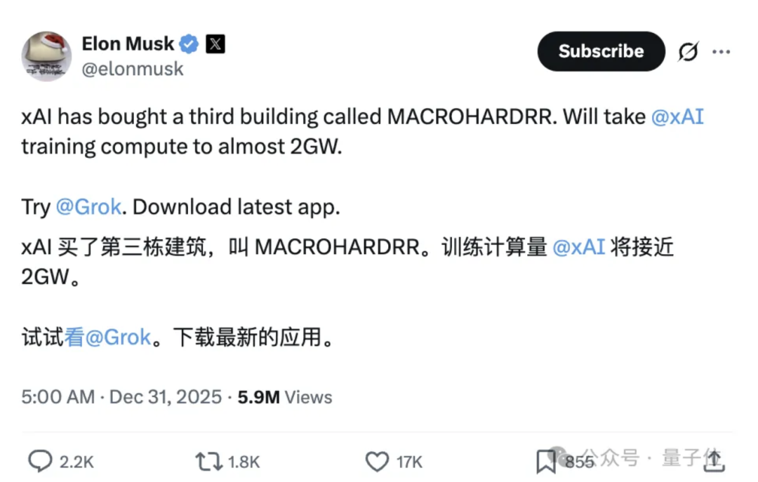 在巨硬成立之后,围绕它的消息多半集中在算力中心建设上,比如Colossus II以及MACROHARDRR,具体的软件成果并不多,相对神秘。