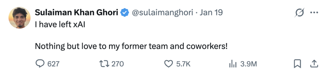 到了2月初,xAI也是经历了刷屏的“todya i left xAI”离职热潮。